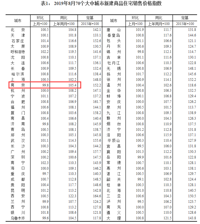 南京新闻网讯 国家统计局8月份70个大中城市商品住宅销售价格数据出炉,南京新房价格环比下跌0.2%,同比上涨5.4%。